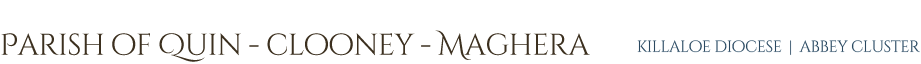 The Parish of Quin Clooney Maghera is in the Diocese of Killaloe and forms part of the Abbey Cluster with the parishes of Ennis, Clarecastle and Doora/Barefield.